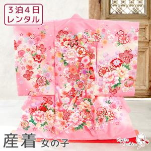 【レンタル】ピンク / 産着 お宮参りセット 色指定 おまかせレンタル 女の子 初着 御宮参り 5点 フルセット