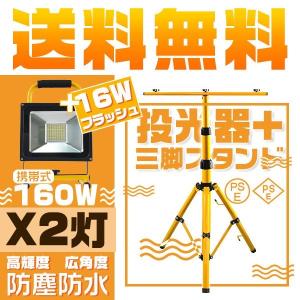 送料無 LED投光器 充電式投光器 160W+16Wフラッシュ 専用三脚スタンド付 MAX160CM調節可 19600LM MAX22時間 PSE 照明 漁業 2t160w+zj