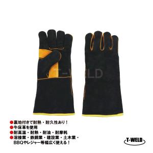 溶接 鉄鋼 建設 耐熱 作業用 牛革素材 5本指 ロング 手袋 長さ L:50cm 厚い手袋裏地付 黒色 サンプル 1双 BBQ