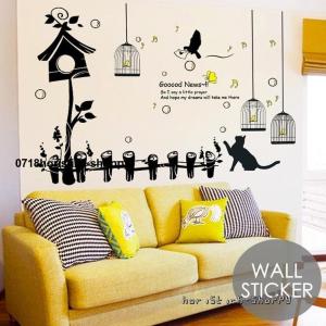 ウォールステッカー 壁ステッカー 壁紙シール シール式 猫 ネコ 鳥小屋 杭 音符 ルームデコレーション ウォールデコレーション 可愛い お洒落 貼り