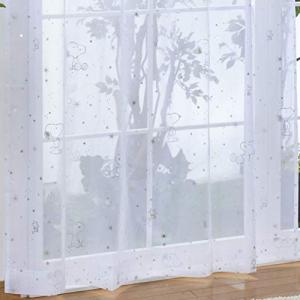 ピーナッツ(Peanuts) スヌーピー SNOOPY 外から見えにくい UVカット レースカーテン 2枚組 フラワー 幅100×133cm丈