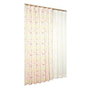 ユニベール ねこ柄ドレープ&ねこ柄レースカーテンセット さんぽだにゃん ピンク 幅100×丈178cm 4枚組