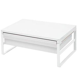 リヒトラブ パソコン台 モニター台 机上台 白 幅39×奥行25×高さ16cm 引出し付ハイ 耐荷重15kg A7342-0