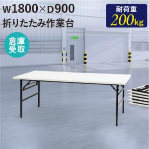 法人限定 作業台 折りたたみ ワークテーブル 幅1800×奥行900mm 作業テーブル 軽量 テーブル 工場 施設 スタッキング 完成品 作業机 共巻 折畳 OTS-1890
