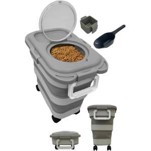 大容量 ペットフードストッカー キャスター付き 計量カップ付き ストッカー 保存ケース 乾燥剤ボックス付 コンパクト