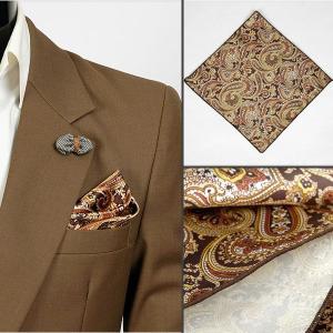 ポケットチーフ ペイズリー柄 チーフ ブラウン サテン生地 PC30