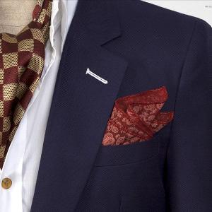 ポケットチーフ ペイズリー柄 チーフ ワイン色 綿混素材 PC32