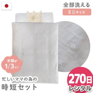 【レンタル270日】 サンデシカ 洗える時短ベビー布団セット ミニサイズ 6点セット 日本製 防水トリプルシーツ入り 組布団