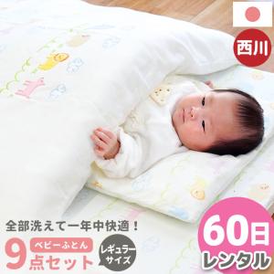 【レンタル60日】 西川ベビー布団セット レギュラー 9点セット 日本製 オールシーズン2枚合わせ 洗える布団 set