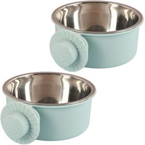 ペットボウル ハンガー ゲージ用 食器 餌入れ ぶら下げ式 固定 水飲み 猫 犬 小動物 2個セット (グリーン)
