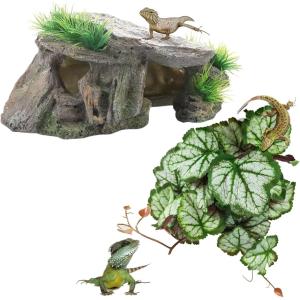 カナヘビ ビバリウム トカゲ シェルター 人工植物 爬虫類 隠れ家 亀 陸地 浮島 飼育 ロックシェルター(グレー)