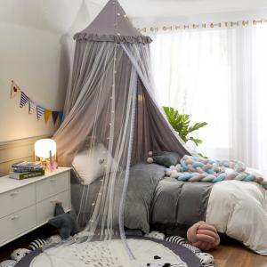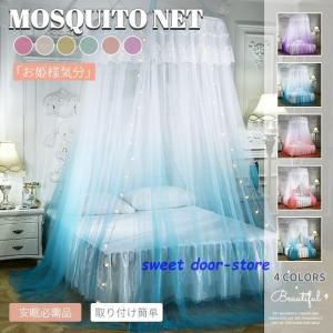 Yahoo!1位獲得【星飾り付】即納 ベッド蚊帳 天蓋カーテン モスキートネット キャノピー モスキーノテント スリーピングカーテンお姫様 円形 吊り下げ 子供部屋
