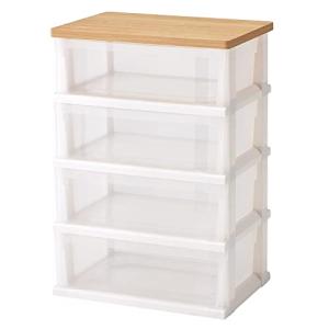 JEJアステージ 収納チェスト ピット 木製天板 ワイドチェスト 4段 ホワイト 日本製 簡単組み立て 幅54.5×奥行40.5×高さ84.5c