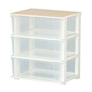 JEJアステージ 収納チェスト ピット 木製天板 ワイドチェスト 3段 クリア 日本製 簡単組み立て 幅54.5×奥行40.5×高さ64.5cm