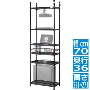 バウヒュッテ デスクの向こう側ウォールラック 突っ張りタイプ 『有孔ボード×可動棚 デスクの向こうに壁面収納』 幅70cm BHW-700T-BK