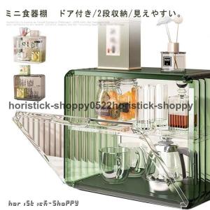ミニ食器棚 2段 ロータイプ スリム 小さい 卓上 ラック 棚 収納ボックス アンティーク調 収納ケース キッチン 上置き 収納 コンパクト 扉付 お