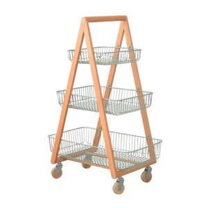 東谷 バスケットワゴン 3段 メッシュカゴ(グリーン)