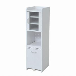 JKプラン 食器棚 コンパクト 隙間収納 キッチン 家電収納 スリム ラック 扉付き(ホワイト)
