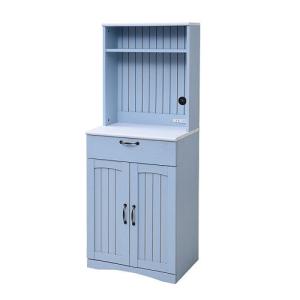 JKプラン フレンチカントリー キッチンカウンター レンジ台 コンセント付 キッチン収納 収納(ブルー)