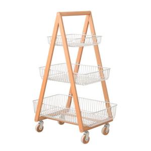 JKプラン ヨーロッパ風 ロートアイアン 家具 キャスター 付き スリム 木製 アイアン 収納ワゴン(ホワイト)