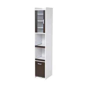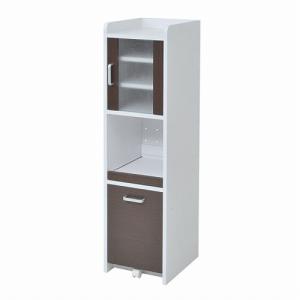 JKプラン 食器棚 コンパクト 隙間収納 キッチン 家電収納 スリム ラック 扉付き(ホワイトダークブラウン)