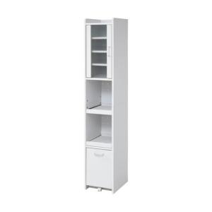 JKプラン 食器棚 コンパクト 隙間収納 キッチン 家電収納 スリム ラック 扉付き(ホワイト)