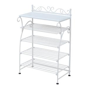 JKプラン シューズボックス シューズラック 飾り棚 靴 収納 アンティーク風ヨーロッパ風 ロートアイアン(ホワイト)