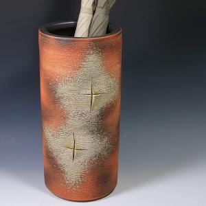 信楽焼きかさたて 月の草花彫り傘立て 陶器かさたて [kt-0118]
