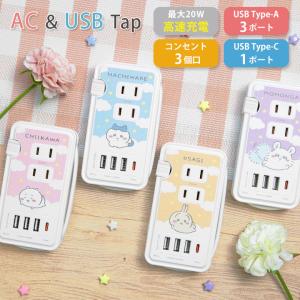 ACタップ usb ちいかわ USBポート付き コンセント3口 Type-C Type-A USBポート タイプC タイプA 充電器 電源タップ 充電タップ ck-80