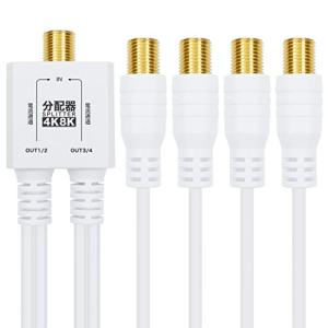 ホーリック アンテナ4分配器 4K8K放送(3224MHz)/BS/CS/地デジ/CATV 対応 極細ケーブル一体型 10cm ホワイト F型接