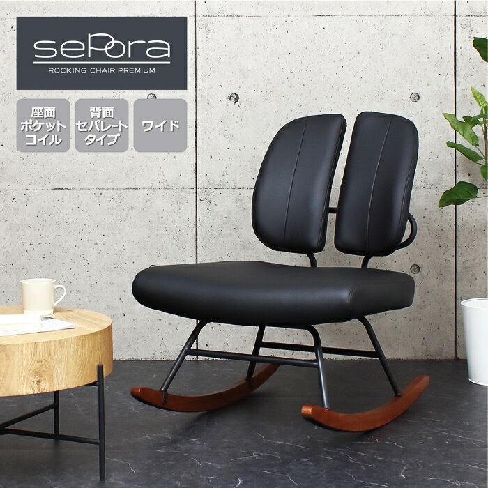 ロッキングチェア ポケットコイル レザー調 あぐら 肘無 アームレス ブラック 高級感 セパレート背もたれ アンティーク おしゃれ モダン 天然木 拭ける 書斎チェア 黒色 北欧 マリン風 大人 座り心地 揺れる ワイド