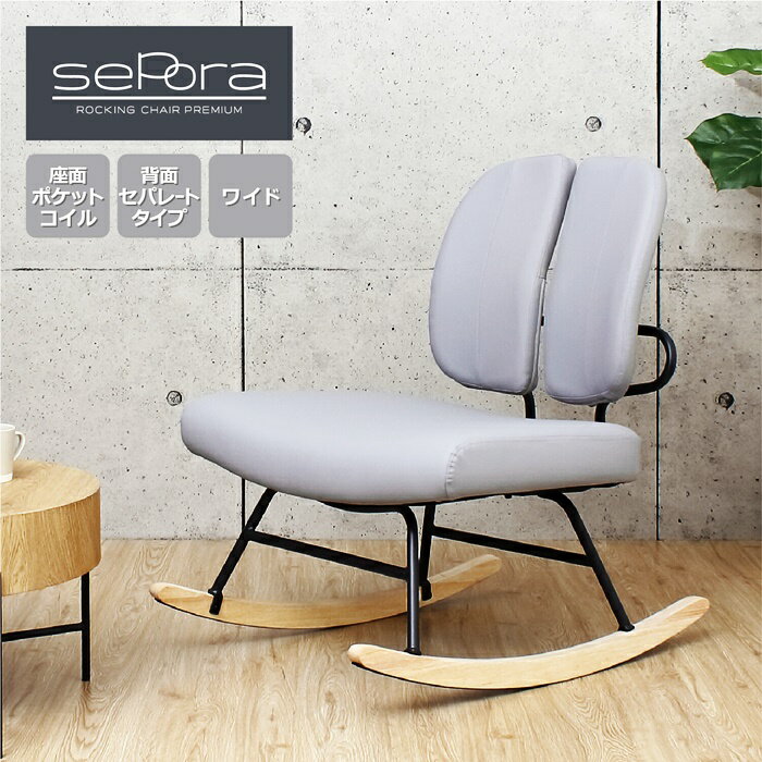 ロッキングチェア ポケットコイル レザー調 あぐら 肘無 アームレス グレー 高級感 セパレート背もたれ アンティーク おしゃれ モダン 天然木 拭ける 書斎チェア 灰色 北欧 マリン風 大人 座り心地 揺れる ワイド