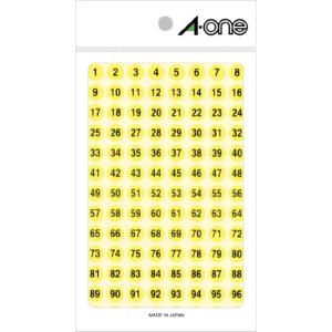エーワン 特殊ラベル 数字 蛍光黄 丸型 9mm 4シート 08085