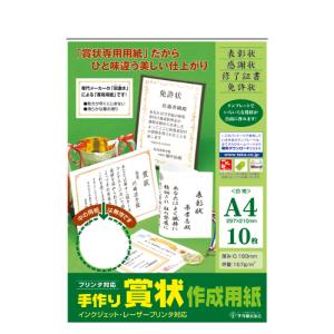 賞状 A4 卒業 卒業式 卒業証書 賞状用紙 賞状印刷 10枚 表彰状 名入れ プリント 認定証 定年退職 スポーツ
