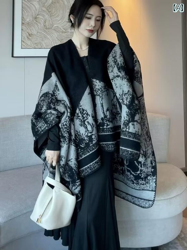 レディース オシャレ スカーフ フランス製 JEFFBEZOS スカーフ レディース 暖かい 水墨 画 ケープ 高級 ウール ショール 二 重 目的