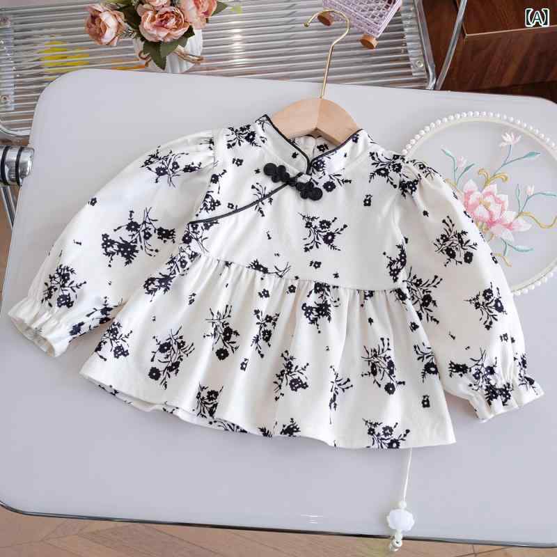 花柄 プリント 長袖 綿 トップス アウター ブラウス Vネック ゆったり ソフトな肌触り おしゃれ着 普段使い 春秋 キッズ カジュアル かわいい