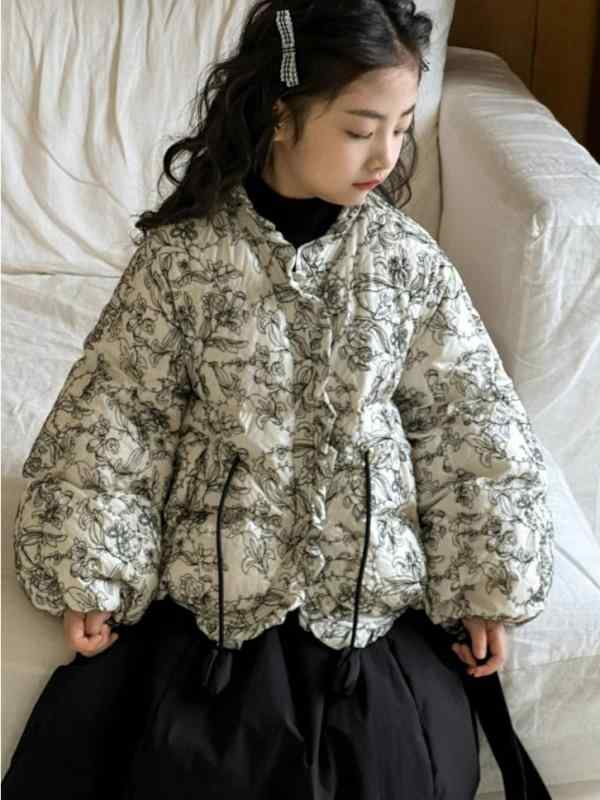 子 キッズ ガールズ 小中学生 ジュニア 8歳以上 冬物 防寒 厚手 ダウン風 アウター コート 丸首 チャイナ風