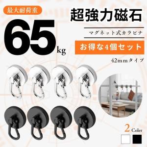 カラビナ マグネット フック 4個セット シェード 強力 マグネットフック サンシェード オーニング カラビナ付磁石 磁石 超強力 42mm