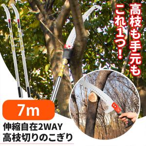 高枝ノコギリ 伸縮式 高枝切りノコ 切断のこぎり 高枝切りバサミ 高枝鋸 7m 伸縮ポール 枝切り 剪定 園芸用品 庭木 果樹 剪定のこぎり 高所作業
