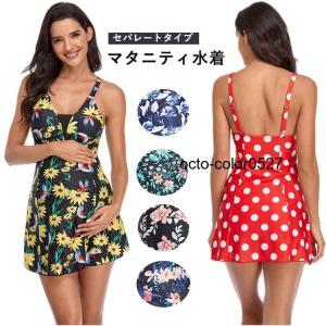 水着 スイミング 水着 妊婦水着 露出控えめ パッド付 ワイヤー無し 水泳 フレアワンピース セパレートタイプ マリン 妊婦用 ママ 女性 夏休み