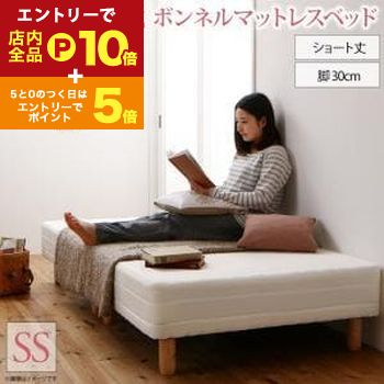 【エントリーでP10倍!クーポン有!スーパーSALE】ショート丈 分割式 脚付き マットレスベッド セミシングル | マットレス ベッド 単品 ボンネルコイル マットレスタイプ ベッドパッド 小さめサイズ コンパクト 軽量 ショートサイズ 子ども ワンルーム 小柄な方に ワン