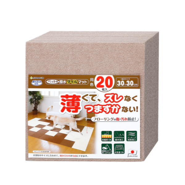サンコー ペット用 撥水タイルマット ベージュ KM-04 30×30cm 厚み4mm 同色20枚入