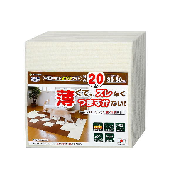 サンコー ペット用 撥水タイルマット アイボリー KM-05 30×30cm 厚み4mm 同色20枚入