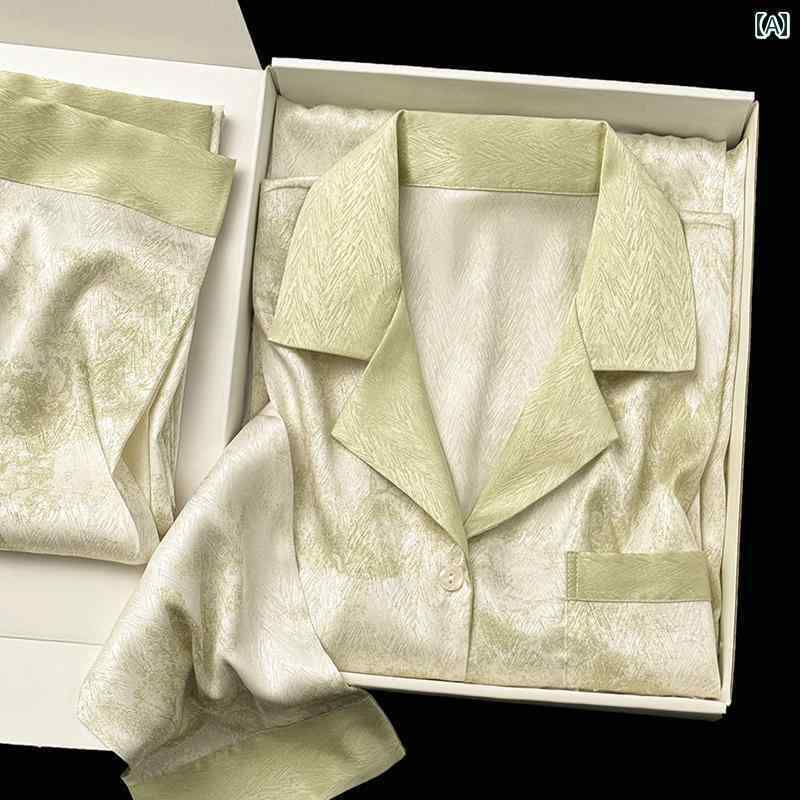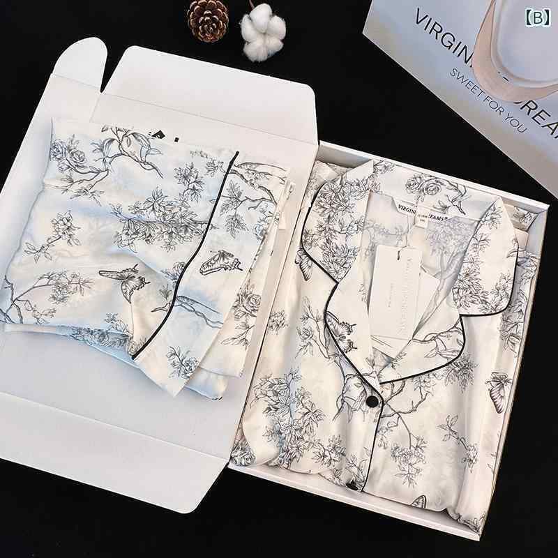 シルク パジャマ レディース シルクパジャマ レディース 春秋 長袖 ズボン 高級 水墨 画 サテン ホームウェア ギフト ボックス 3点 セット