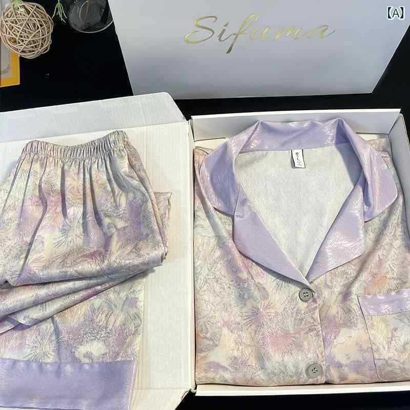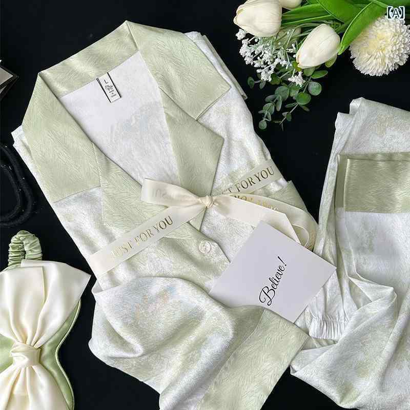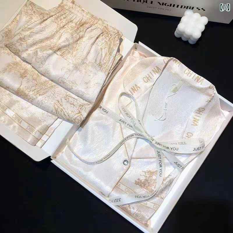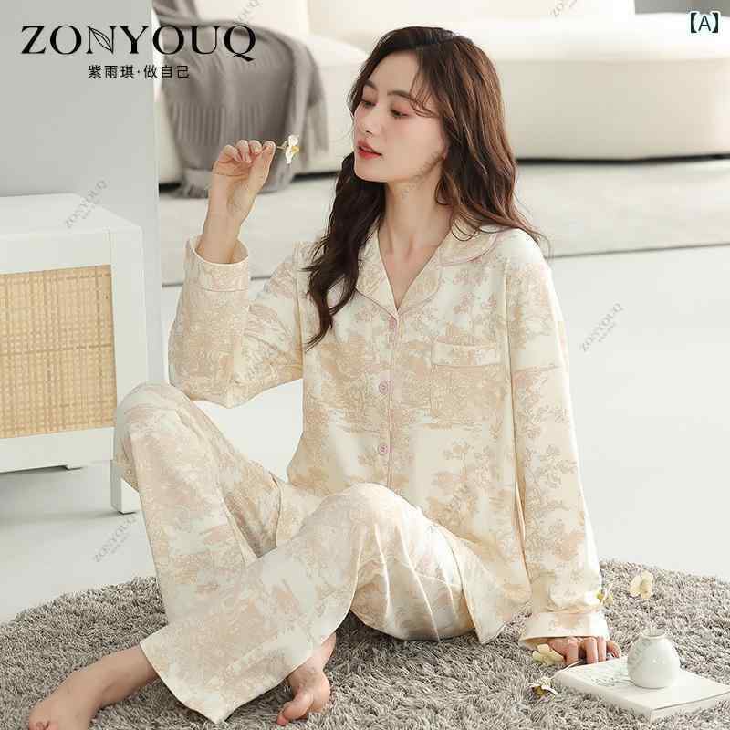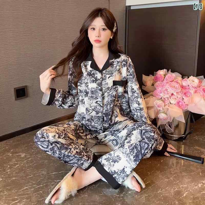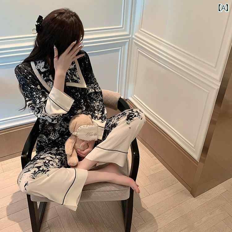 シルク パジャマ レディース 韓国 パジャマ 女性用 春秋 スタイル 冷感 長袖 イン 高級 水墨 画 薄手