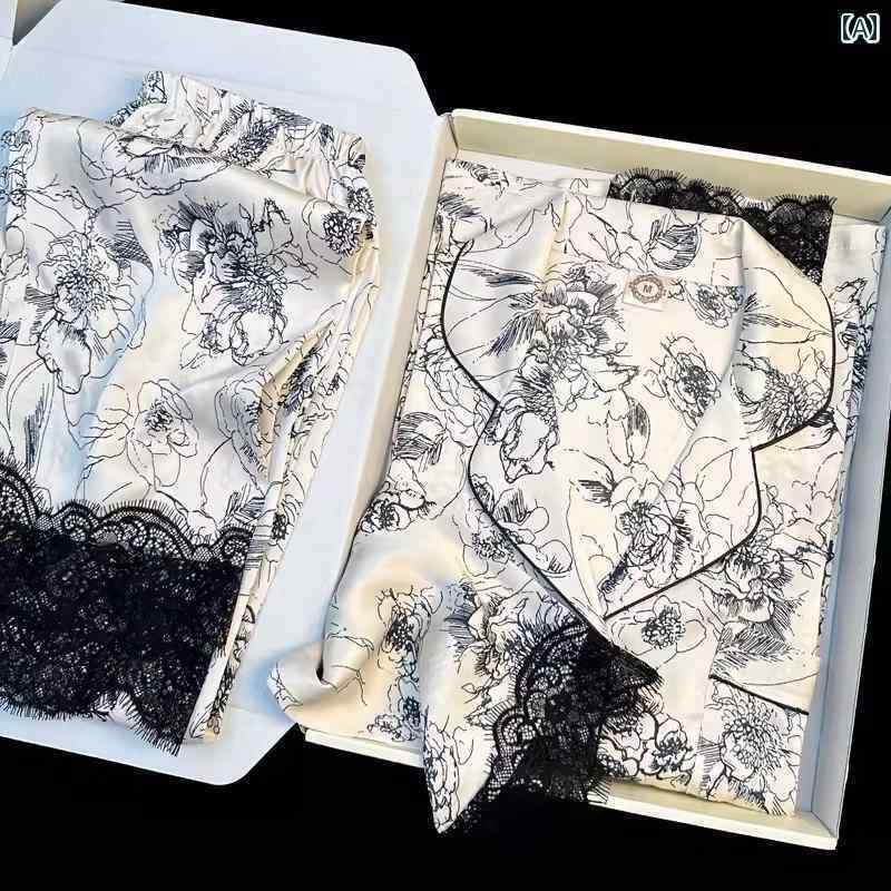 シルク パジャマ レディース 初秋 女性用 パジャマ 冷感 長袖 ズボン スーツ な 水墨 画 レースエッジ カジュアル ホームウェア