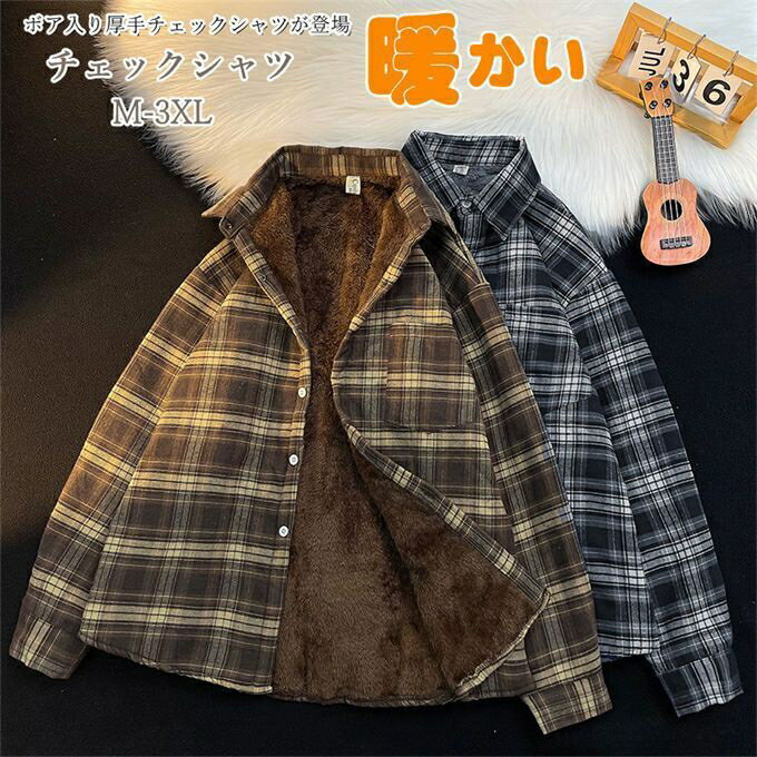 冬 秋 おしゃれ メンズ レディース カジュアル チェックシャツ 厚手 防寒着 裏起毛 ネルシャツ 大きいサイズ 暖かい ボアジャケット 長袖 オーバーサイズ チェック柄 ファッション 男女兼用 人気トレンドコーデに最適な暖かく快適なデザインの冬用シャツ