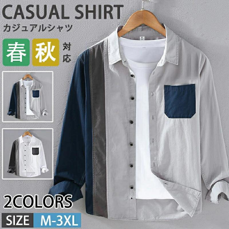 メンズ 長袖シャツ シャツ 切り替え 長袖 カジュアルシャツ Yシャツ トップス 春服 秋服 大きサイズ アメカジ 20代 30代