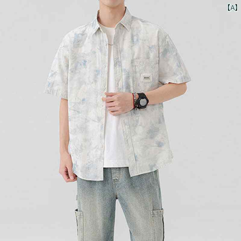 プリント レトロ トップス 五分袖 シングルブレスト レギュラーカラー カジュアル チャイナ風 夏 メンズ 男性 紳士 軽量 柔らかい 通勤 オフィス ビジネス 日常使い