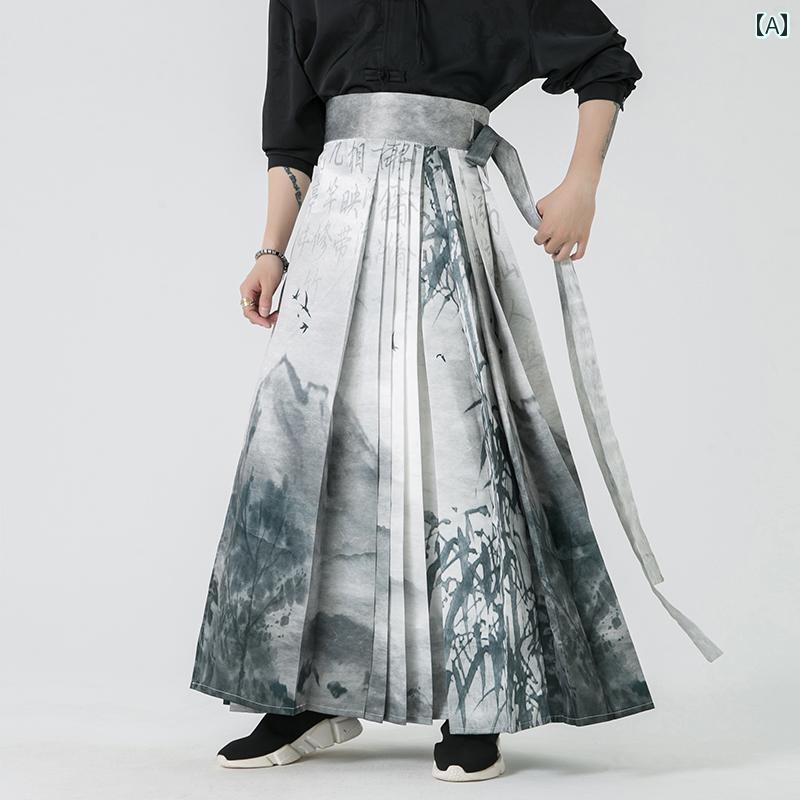 メンズ チャイナ風 漢服 春秋 スカート レトロ ゆったり レディース キュロット ロング